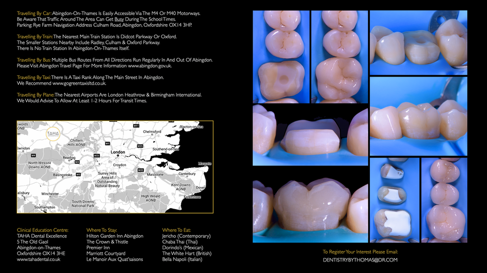 The Oxfordshire location: TAHA Dental Excellence Abingdon on Thames (for parking and travel please visit click here and scroll down the page) MAX 8 DELEGATES